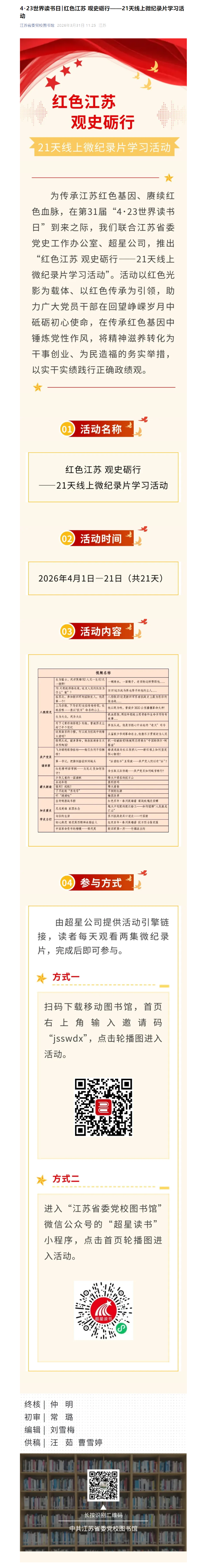 4・23世界读书日│红色江苏 观史砺行——21天线上微纪录片学习活动